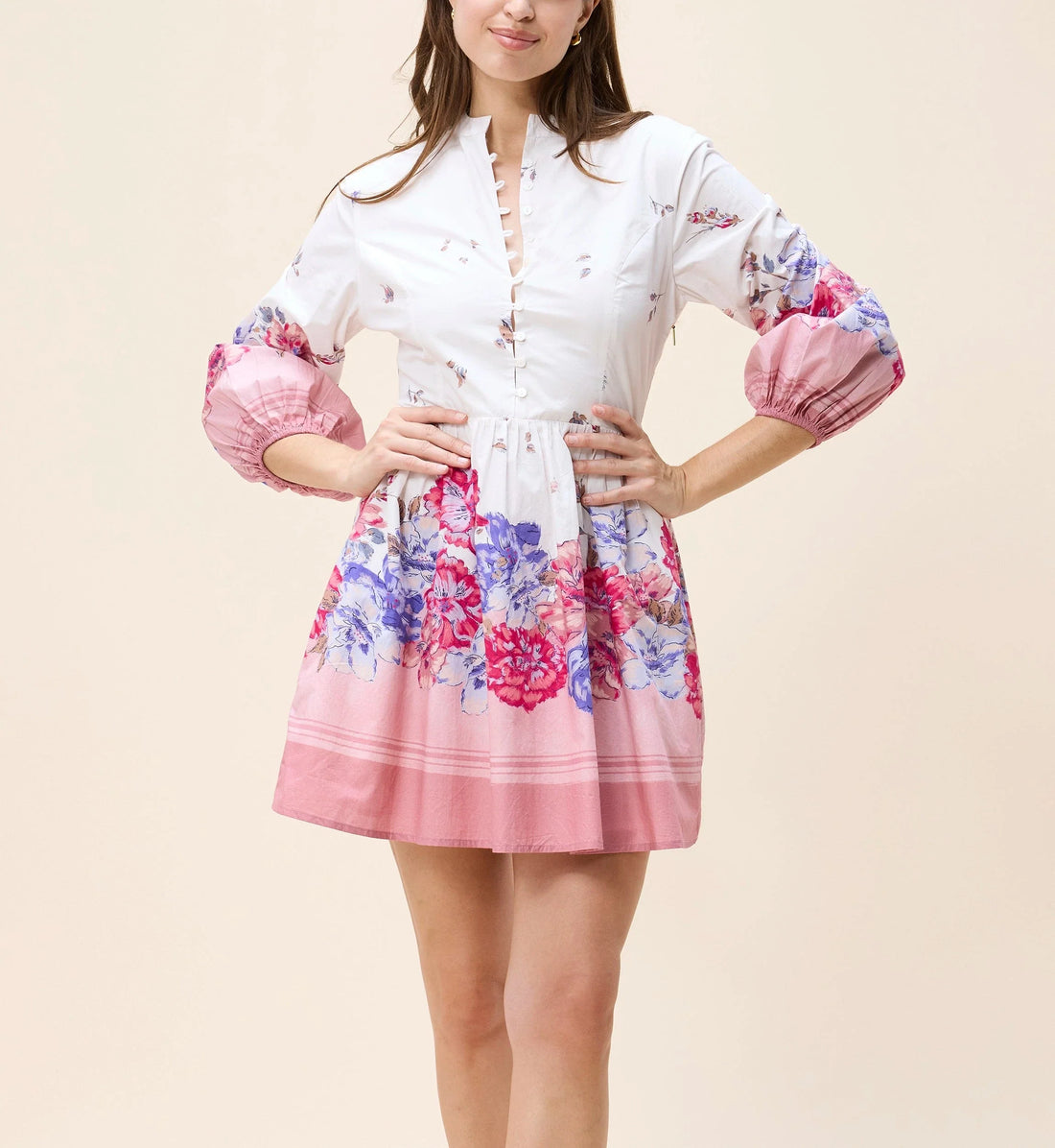 Navy Floral Chiffon Flare-Sleeve Mini Dress